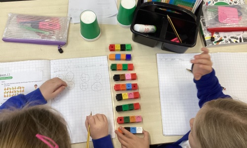In maths, we have been working really hard on solving division and multiplication problems. We used practical resources to show and explain our answers.