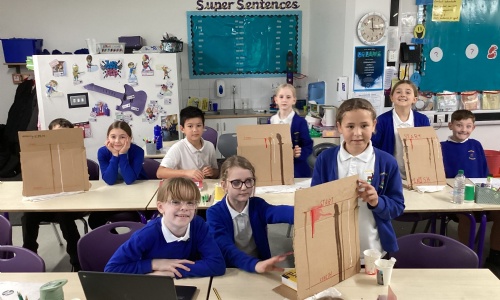 In Year 5 we have been entering the Christmas spirit. This week we walked to St Peter's Church for our Christmas Celebration and sung a new song called Love Shone Down. We listened to Reverend Kate retell the Christmas story. On Thursday, the whole of Key Stage 2 visited the Gordon Craig theatre to watch Dick Whittington for this year's pantomime. In class we have been planning to write our own diary entry based on a BBC documentary about emperor penguins. We are writing from the point of view of one of the camera crew. In French we have been learning how to say what different pets we have. In art we have designed a monument all about ourselves. We have thought about clues to our likes and combined them into one design. Lastly, in science, we have been thinking about alternative uses for everyday objects: paper cups, ruler, books. We have then considered how we would advertise our items with their different uses.