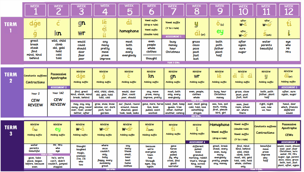 Both the teaching of High Frequency Words and Common Exception Words follow the same format of: